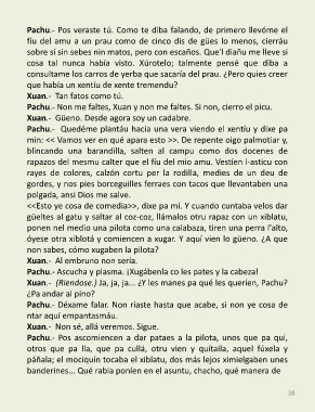 Pachu.- Pos ascomiencen a dar pataes a la pilota, unos que pa qui,