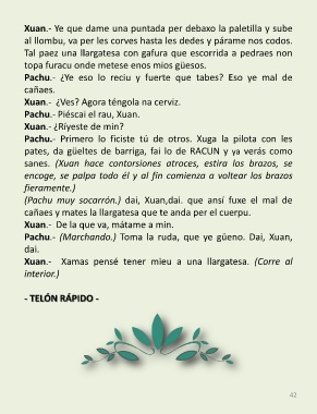 Pachu.- (Marchando.) Toma la ruda, que ye güeno. Dai, Xuan,