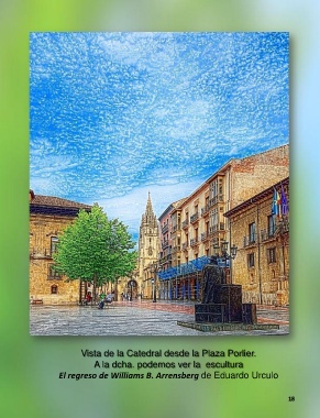 Vista de la Catedral desde la Plaza Porlier. A la dcha. podemos ver la escultura El regreso de Williams B. Arrensberg de Eduardo Urculo