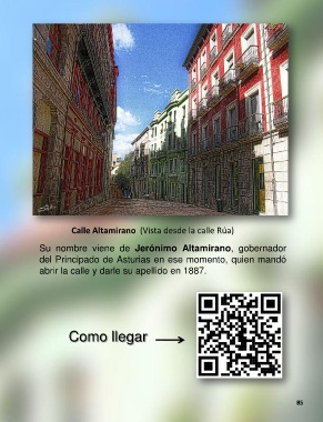 Calle Altamirano (Vista desde la calle Rúa) Su nombre viene de Jerónimo Altamirano, gobernador del Principado de Asturias en ese momento, quien mandó abrir la calle y darle su apellido en 1887. Como llegar